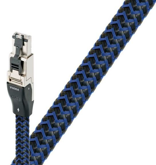 RJ/E Vodka prepared Cat 7 Ethernet cables use Solid 10% Silver conductors, which completely eliminate strand interaction, one of the biggest sources of distortion in cables, for clearer, more dynamic and involving sound. Superior conductor metals minimize distortion by having fewer grain boundaries and less impurities (such as oxides) at those boundaries. Solid High-Density Polyethylene (PE) insulation helps maintain critical signal-pair geometry. Of course all AudioQuest Ethernet cables honor the directionality inherent in all analog and digital audio cables; arrows on the jackets indicate the direction (from source to destination) for the best audio performance.