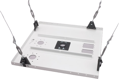 An easy-to-install 2' x 2' plate (secured by safety wire) that is designed to sit unseen above the suspended ceiling. Offers great flexibility for mounting with nine mounting hole positions and threaded ends for accepting 1.5" NPT extension column.Read More