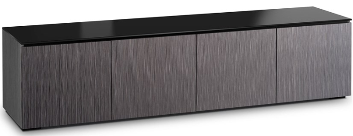The light look and feel of tall grasses is finely set in a vertical textured pattern. Alpi gray oak with black glass top and black feet work in unison, creating the cabinet's hi-tech facade.