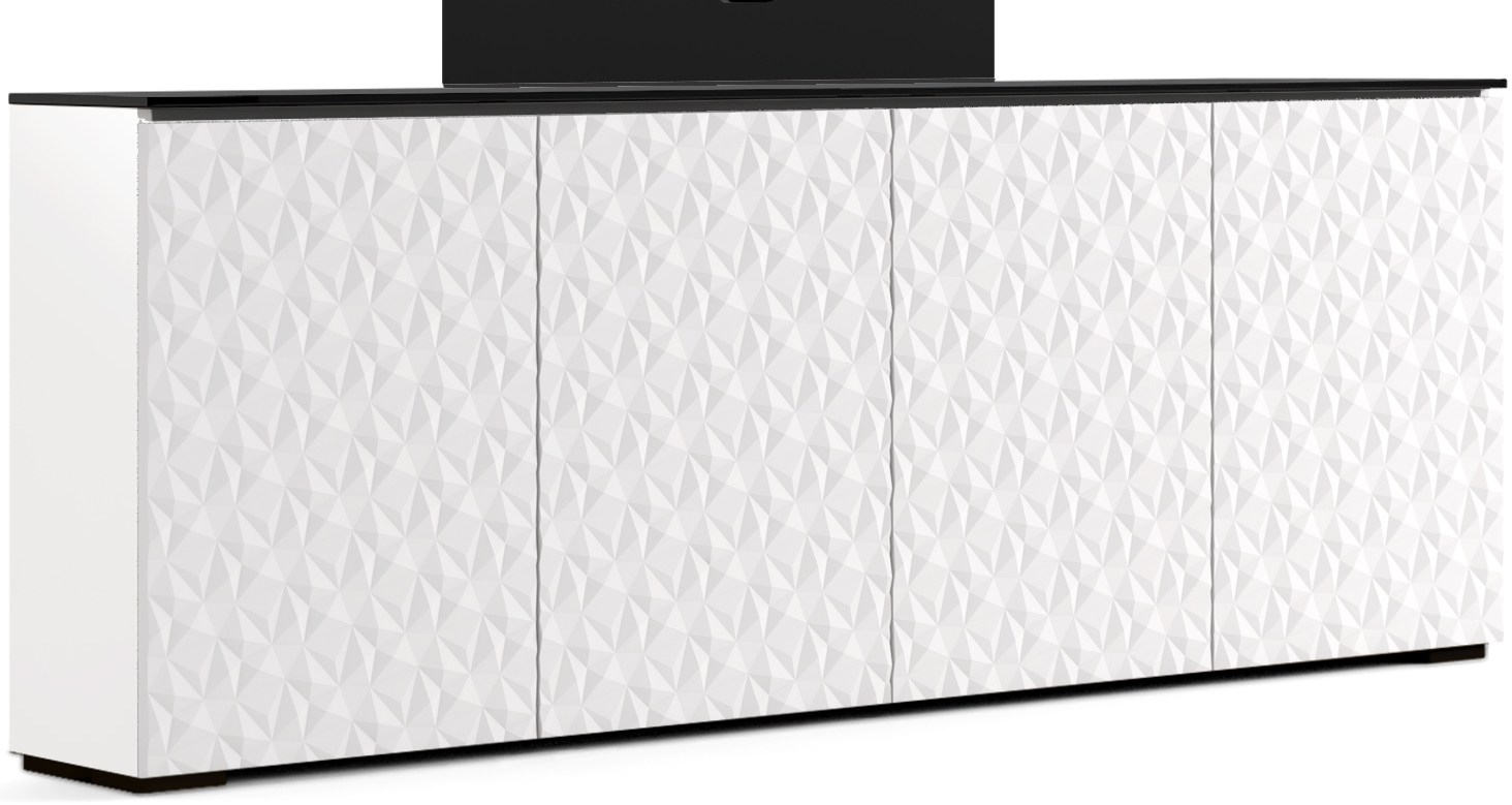 Finished in white, Milan is a sleek door design with a modern geometric three-dimensional, diamond pattern with solid surface, black top. Built-in ventilation louvers for better air flow to keep equipment cool.Read More