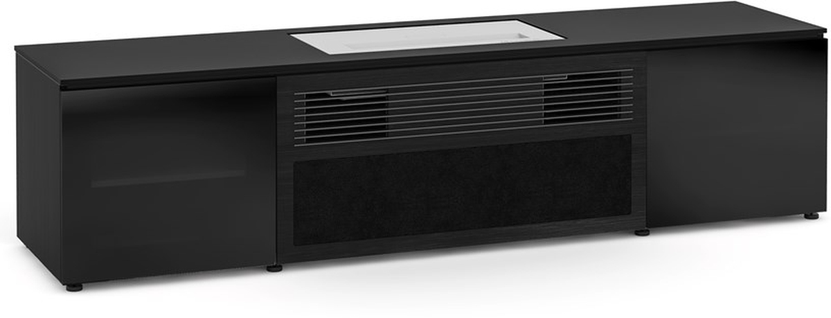 Black beauty’s ultra-sleek techno aesthetic with smoked glass doors and black glass top. A simple installation with no need to open the wall or ceiling to run cables. All supporting components including a speaker system can be enclosed in the credenza to provide a beautiful and simple solution. Flush top surface, recessed projector cavity design, extruded aluminum frame creates a support skeleton, pinch-out rear panels to permit fast, easy access to components and wiring, built-in Louvers for better airflow to keep equipment cool. All supporting components including a speaker system can be enclosed in the credenza to provide a beautiful and simple solution. IR Repeater System required to control projector, wide variety of bolt-on options and accessories are available.