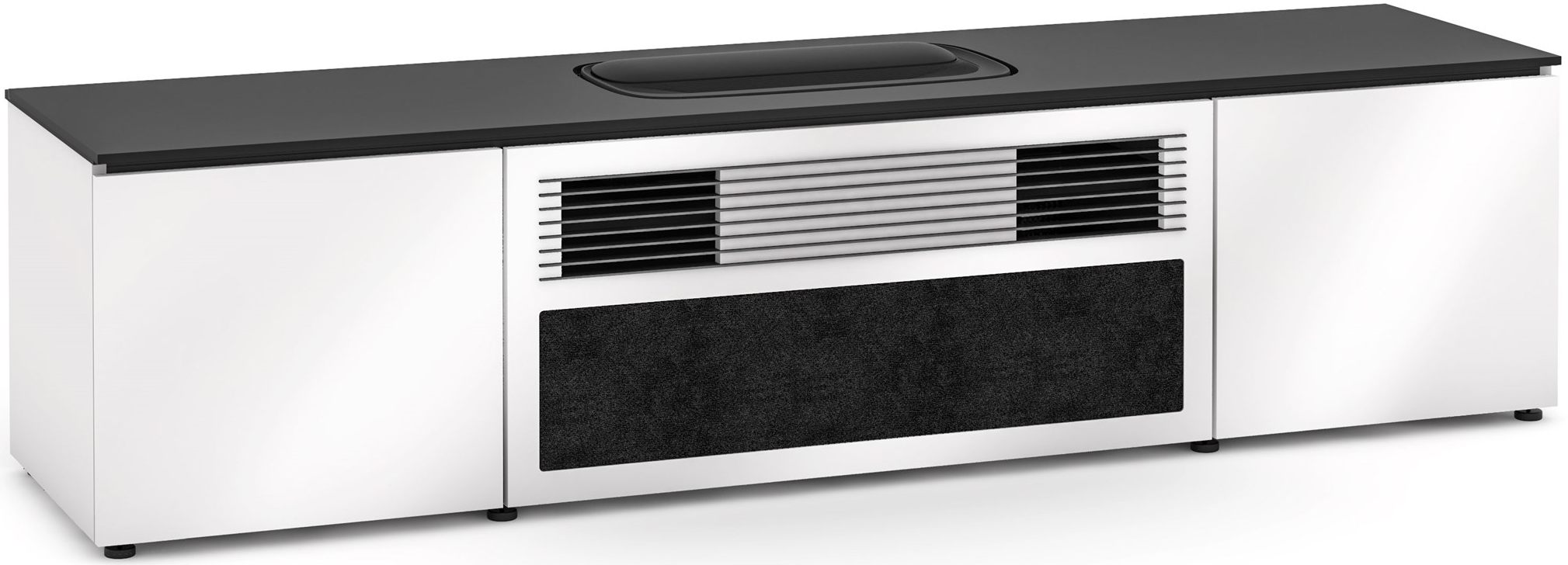 All supporting components including a speaker system can be enclosed in the credenza to provide a beautiful and simple solution. IR Repeater System required to control projector