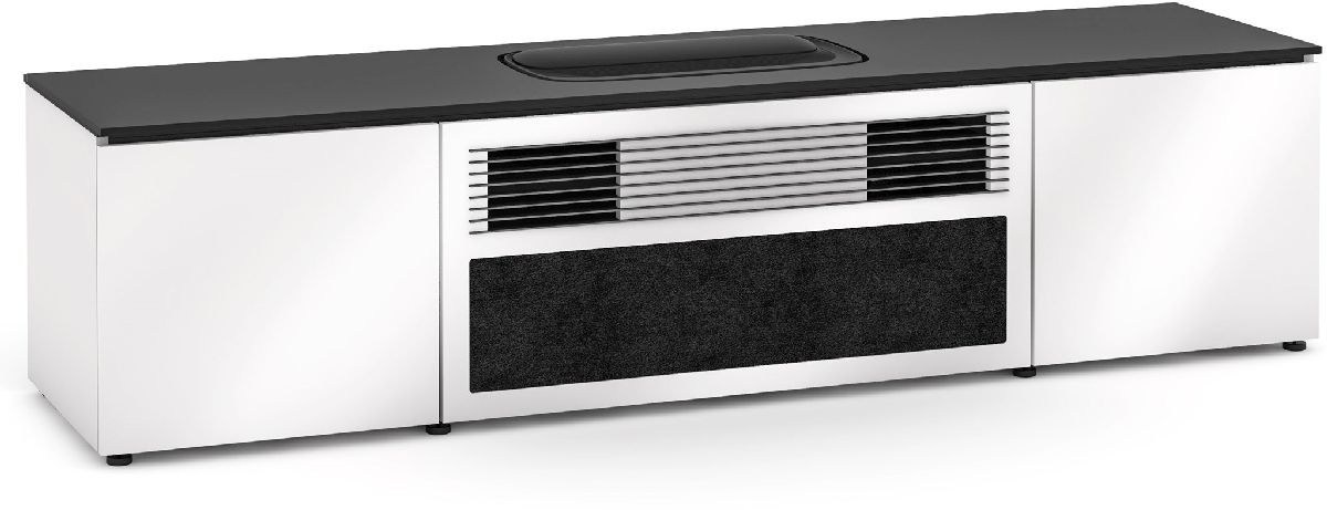 All supporting components including a speaker system can be enclosed in the credenza to provide a beautiful and simple solution. IR Repeater System required to control projector