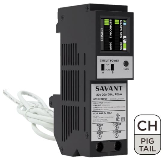 Savant's Dual 20A Power Module (120V AC with Current Transformer - CH™ compatible with pigtail neutral) controls and monitors up to two 20 amp circuits; ideal for outlets, kitchen appliances, lighting, and more.Read More